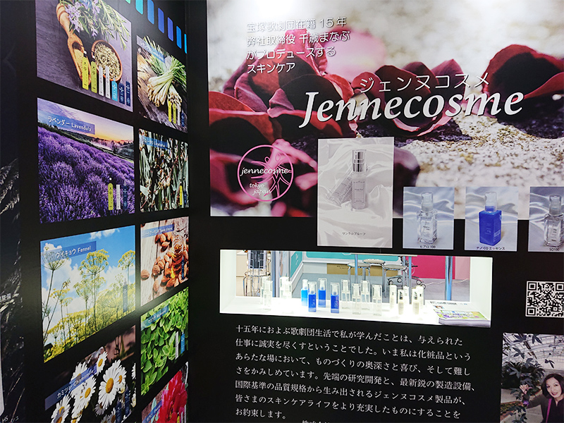 今回私たちが最もアピールするつもりだったのが、元宝塚歌劇団の弊社取締役・千歳まなぶがつくった「ジェンヌコスメ(スキンケア)」でした。しかし、ジェンヌコスメの展示パネルが商談スペースの方にあり、お客さまはどうしてもカラーバターの展示の方に関心を持ってしまうので、ジェンヌコスメの説明が思うようにできませんでした。なかなか思うようには行きませんね。でも、5月にはビューティワールド・ジャパンにも出展するので、何とか今回至らなかったところを修正して臨みたいと思っています。