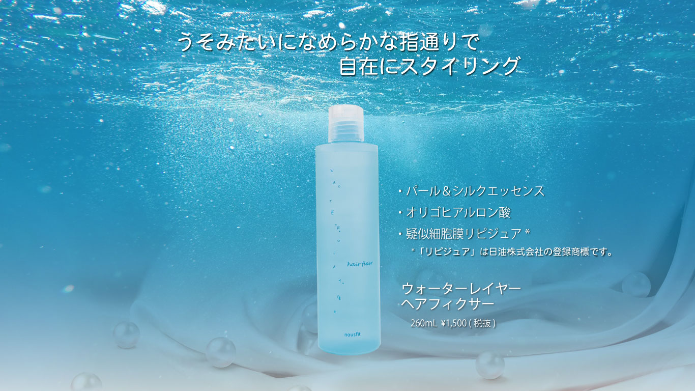 ウォーターレイヤーとは「水の層」。手と髪の間にできた水の層が、指通りを非常になめらかにし、自在なスタイリングを可能にします。